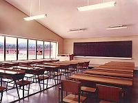 Entre semana, después de desayunar, íbamos a las aulas donde había unos pupitres de color madera, bastante desgastados por el paso del tiempo. Tenían por debajo una especie de balda de unos 20 cm. para poder poner un libro abierto y sacarlo disimuladamente en los exámenes, aunque supongo que no era ése su cometido. Yo no lo hacía.