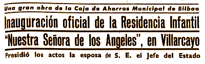 "Buena fortuna les ha deparado Dios a los niños de Vizcaya mediante esta hermosa Residencia que la Caja de Ahorros Municipal ha construido para ellos en Villarcayo, y cuya inauguración oficial, celebrada ayer, fue honrada con la presencia de la excelentísima señora doña Carmen Polo de Franco.