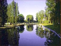 Pero no. No todo fue negro. Hay un lugar donde los recuerdos pasan a ser luminosos. Me refiero al río y sus alrededores; a los rayos de sol que traspasaban el verde de las choperas y el amarillo de los juncos; aquel cielo que veía a través de los árboles cuando me tumbaba en la hierba, oculta, para que mis compañeras no me pillaran cuando jugábamos al esconderite; a los sonidos del viento; a la corriente del agua... Y, ¿qué me decís de aquellas meriendas a orillas del Nela? El pan con chocolate nunca me ha sabido tan bien. Bueno, a lo mejor lo puedo equiparar al café que me tomé al día siguiente de la Kedada, después de pasar un día precioso con todos vosotros; de dormir estupendamente en el Hotel Plati; allí, en la plaza Mayor de Villarcayo, al lado de la fuente... Un café y un croissant a la plancha de levantar el sombrero.