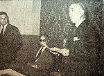 Foto nº 6: "Don José Zorrilla de la Gándara, director general de la Caja de Ahorros Municipal de Bilbao, durante las palabras que pronunció en el Ayuntamiento de Villarcayo, en el acto de la firma de la escritura de compra de terrenos. En el centro, el alcalde de Villarcayo, don José María Tapia". En "La Gaceta del Norte" (Bilbao, 14-VIII-1960; cortesía de la Biblioteca Foral de Bizkaia). |