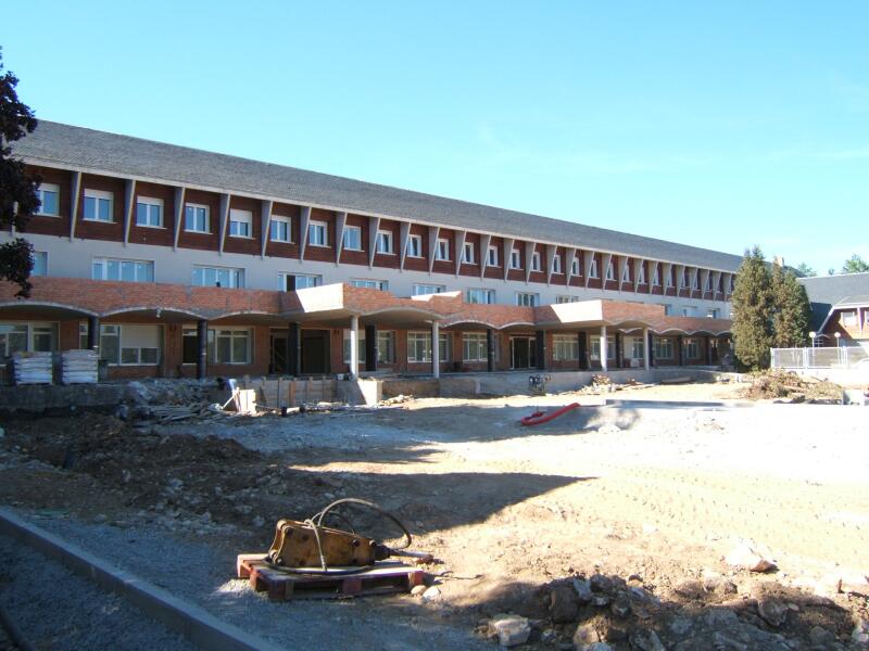 Foto nº 30: Otra estampa clásica de la Residencia. En el verano de 2005, las obras de adaptación del cuerpo central del edificio en Centro de Salud y Especialidades estaban muy avanzadas. (Cortesía del webmaster). |