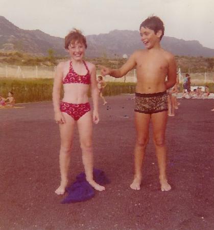 Foto nº 5: En las piscinas (vernano de 1975). Asier B., con una compañera de colonias. (Cortesía de Asier Bastida). |